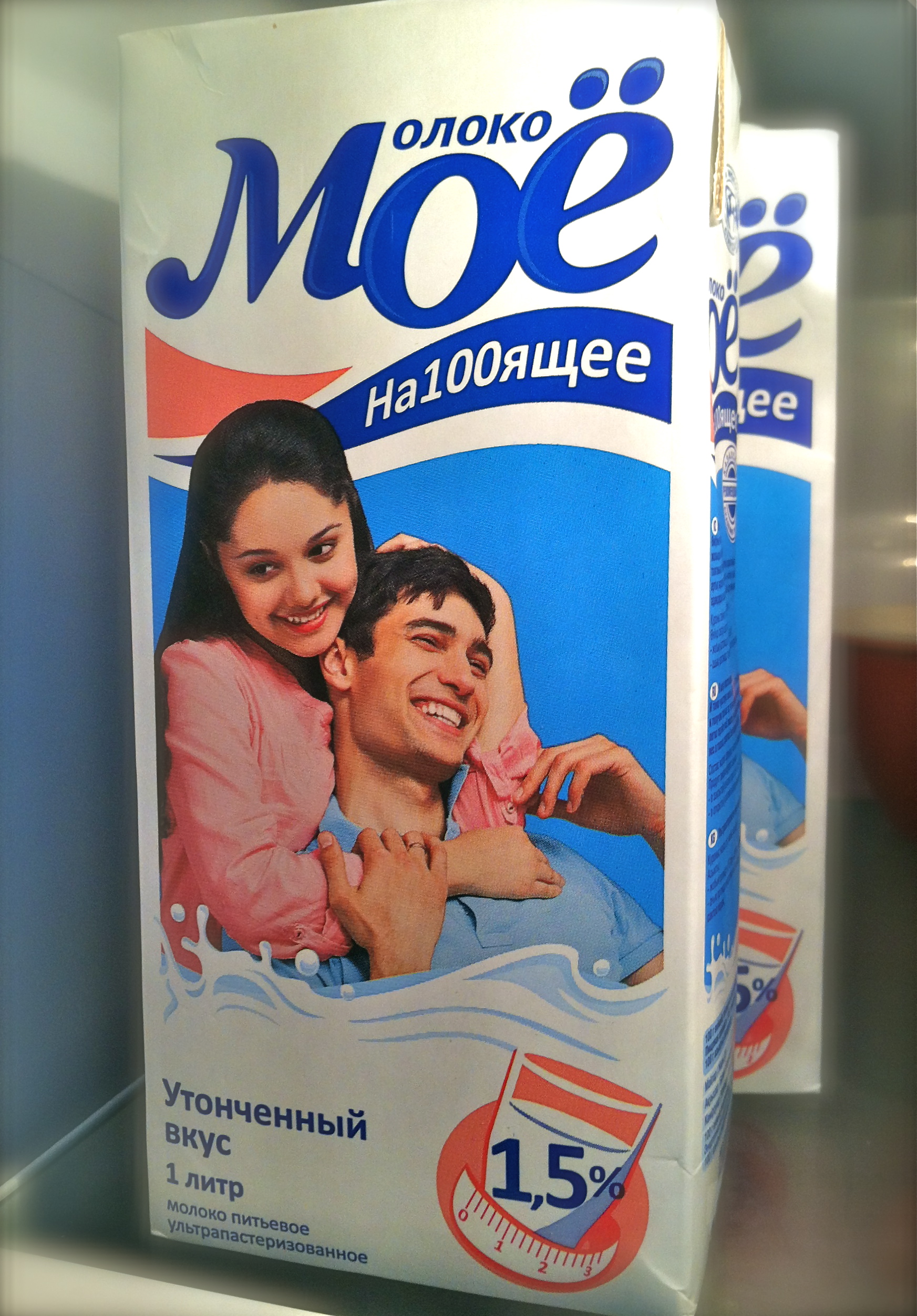 Milk is sold in unrefrigerated one-liter boxes. In America, pasteurization renders milk safe to drink for up to three weeks, if continually refrigerated. In Kazakhstan, we drink milk that has undergone ultrapasteurization or ultra-high temperature treatment (UHT). This process heats the milk to a higher temperature for a shorter amount of time which extends its shelf life and allows it to be stored unrefrigerated.