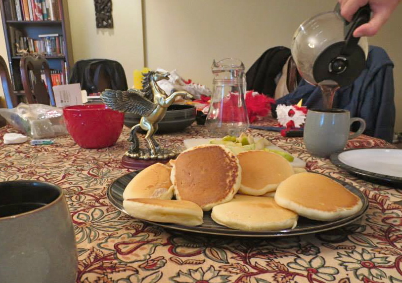 Two families contributed this American holiday classic—but not because the ingredients are easy to find. Green beans, now out of season, can be purchased at METRO or Ramstor (both large, local supermarkets)—for a pretty penny. French’s fried onions and Campbell’s cream of mushroom soup both made their way to Kazakhstan via the pouch and in our friends’ HHE shipment (and just in time!).
